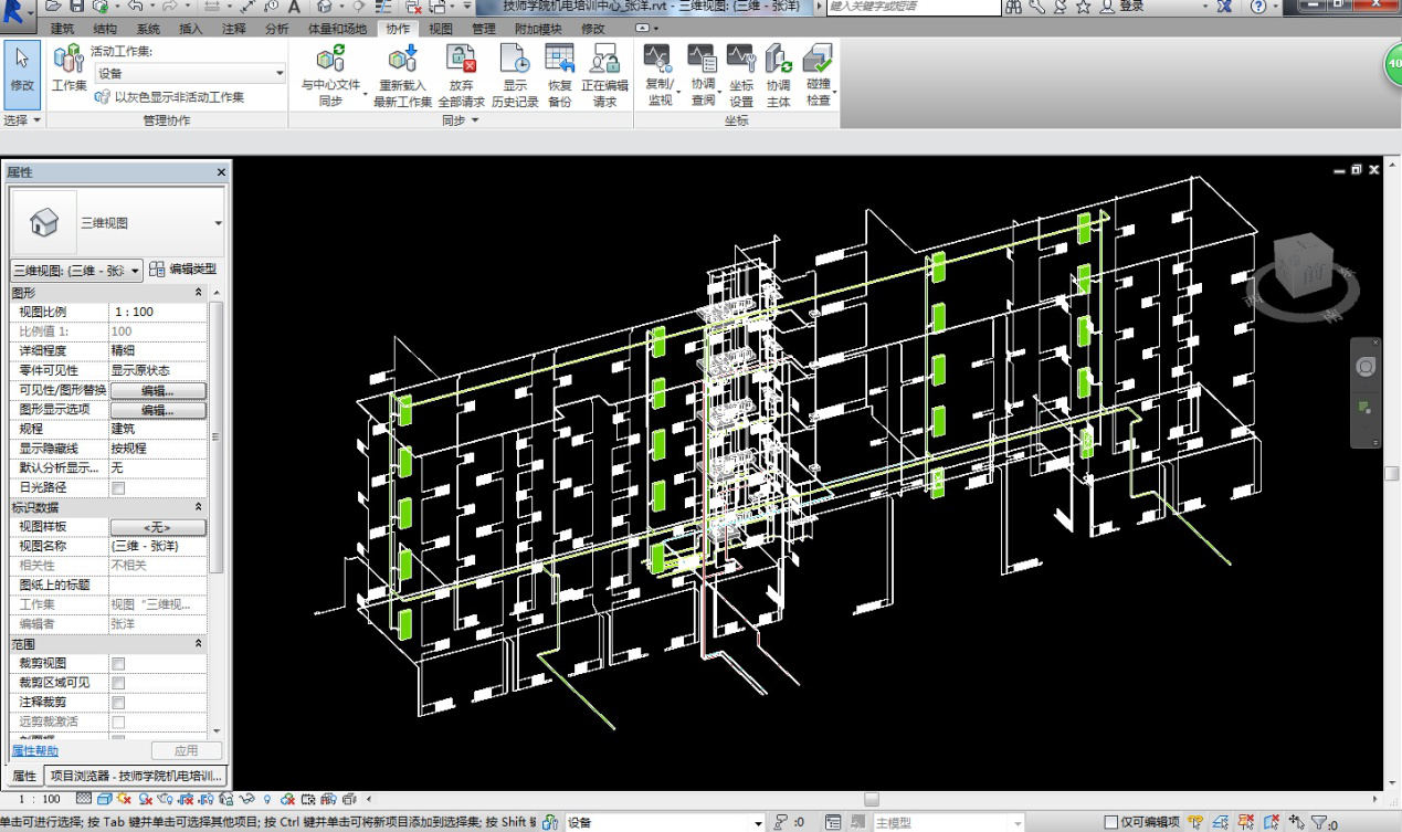 2、 小組成立以來,積極參與各種與BIM相關(guān)的學(xué)習(xí)與活動(dòng),整體掌握了Revit設(shè)計(jì)軟件,為了使小組的學(xué)習(xí)及研究能真正應(yīng)用到實(shí)際工作和工程中,小組各專業(yè)成員利用業(yè)余時(shí)間使用Revit完成了對(duì)已出施工圖項(xiàng)目的重新設(shè)計(jì)。