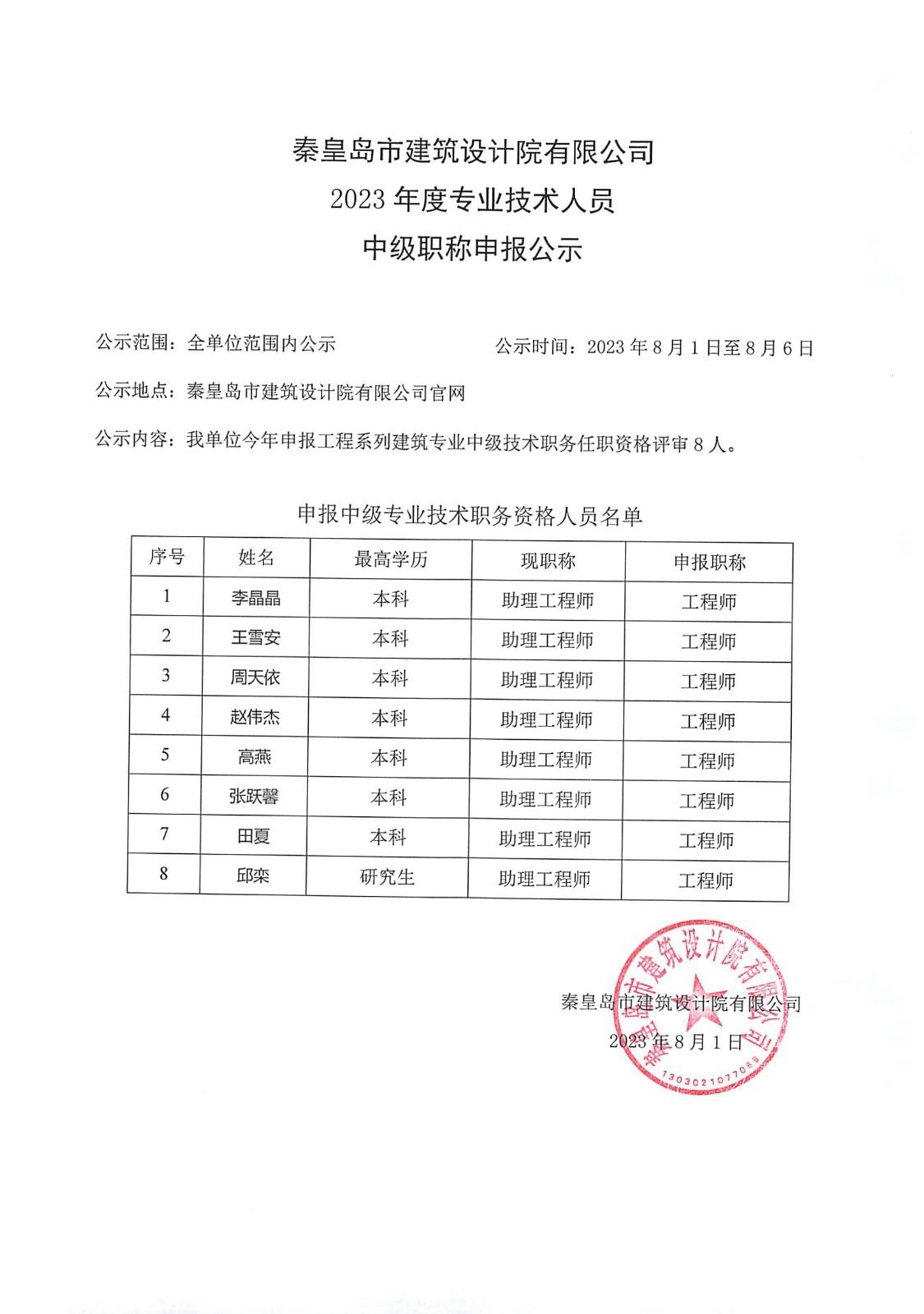 2023中級職稱公示